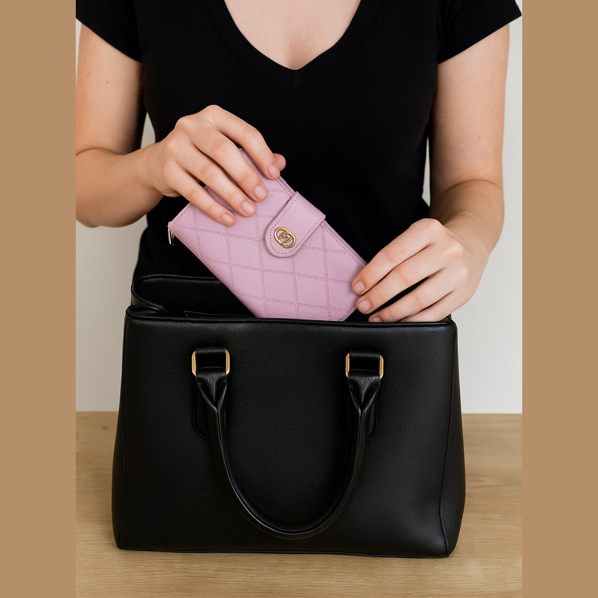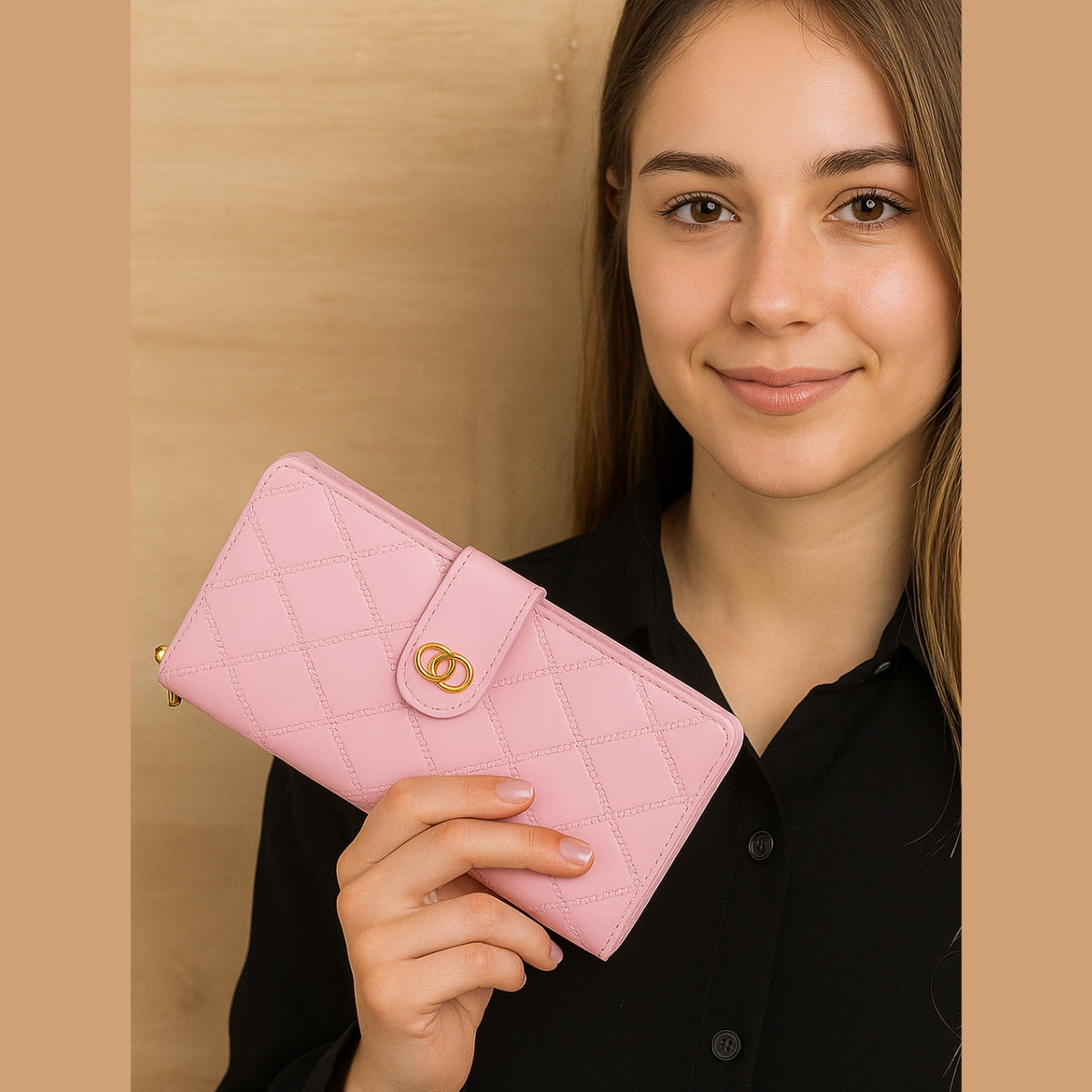 Carteira Feminina Média com Fecho Dourado – Elegância e Espaço na Medida Certa