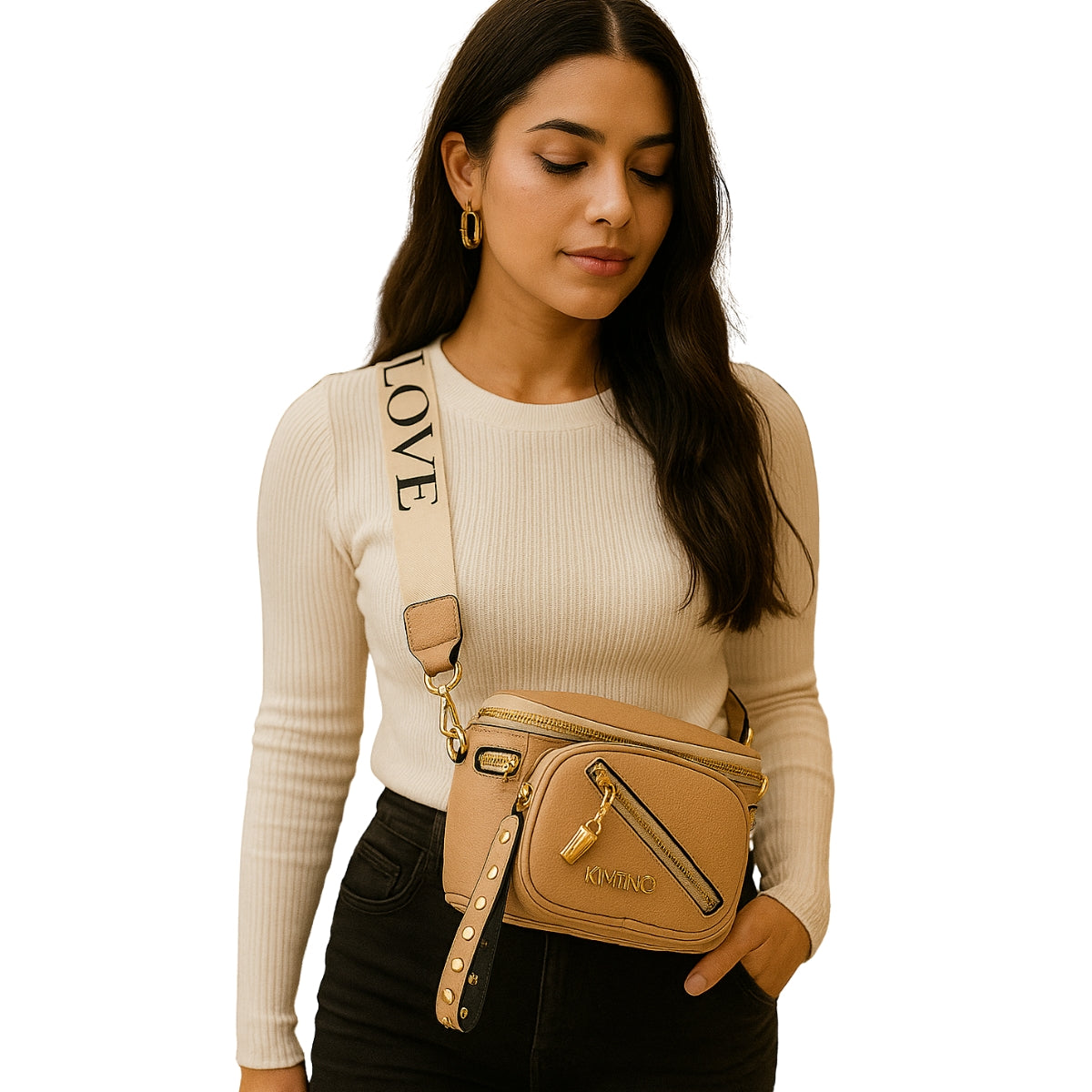 Pochete Feminina Estilosa com Alça Regulável e Metais Dourados